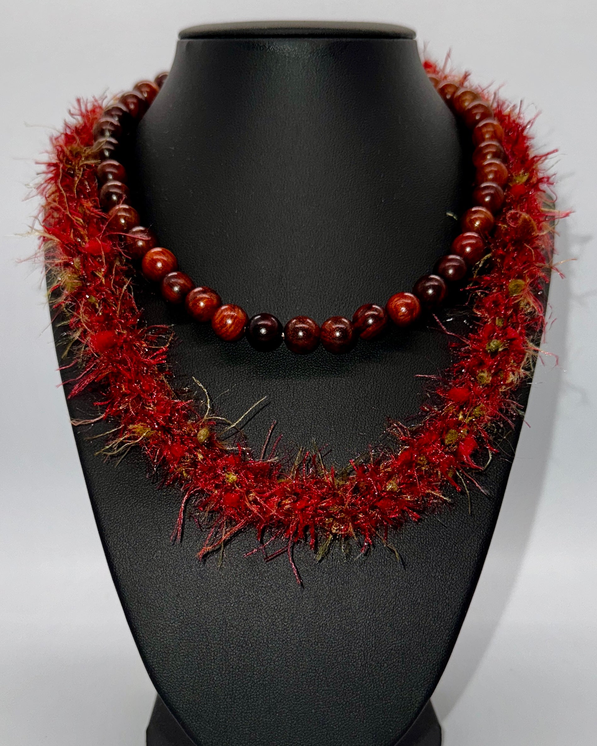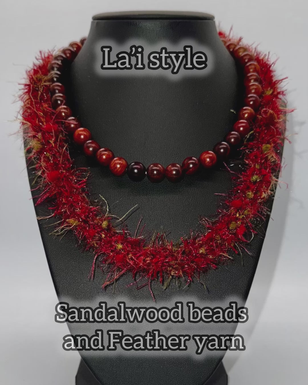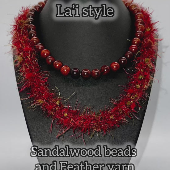 This beautiful lei is made of 10mm Sandalwood beads and Feather yarn. Sandalwood beads have a slight aroma.