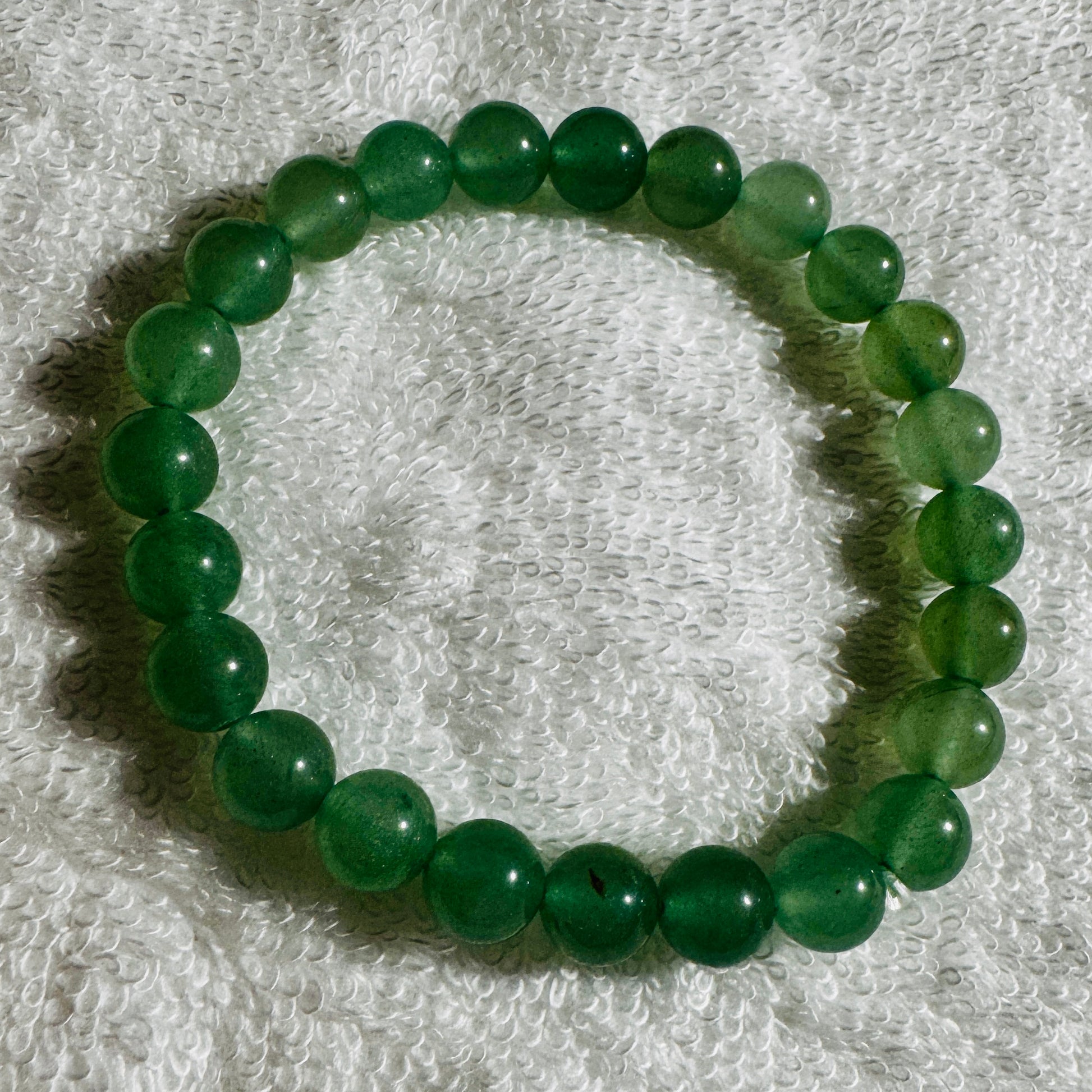 Beautiful 8mm Green Aventurine beads. Very nice translucence. Bracelet size is approx. 6¾".