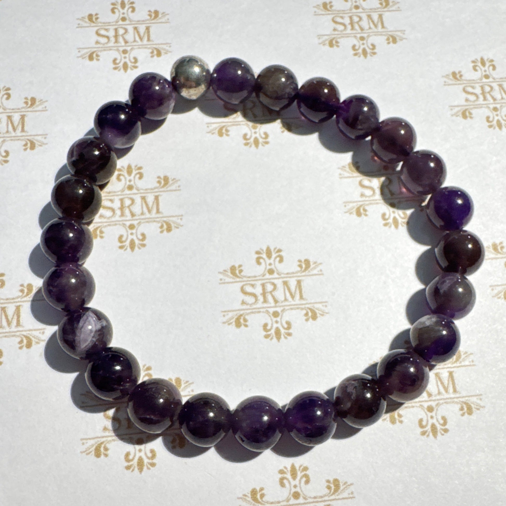 Bracelet : 8mm Amethyst with Silver Plated Bead, 7"