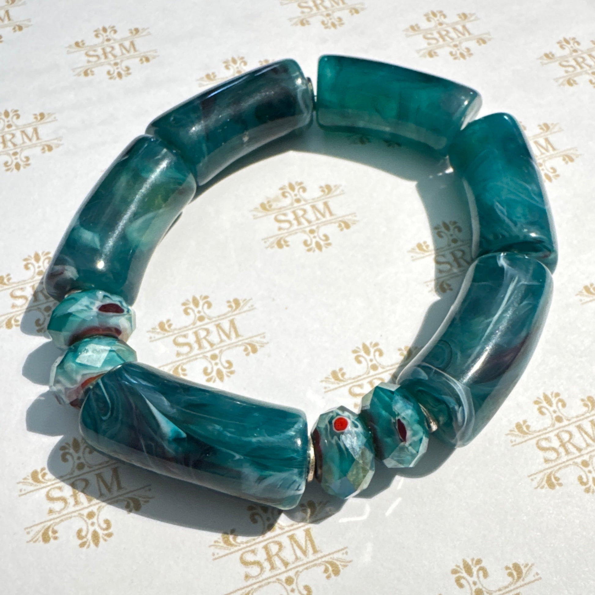Bracelet : Blue/Green "Acrylic Gemstone", Acrylic Tubes, ~7"