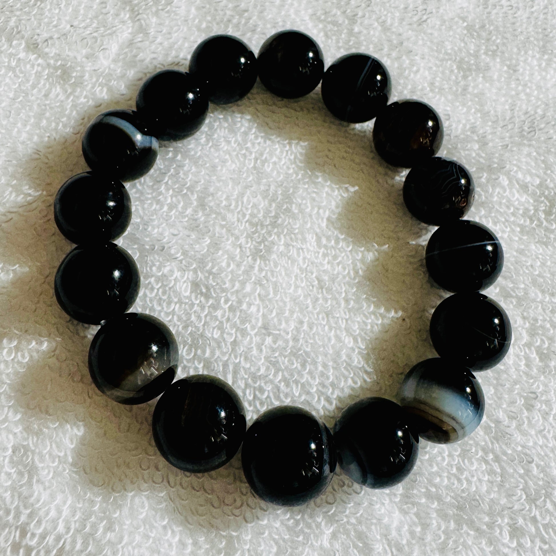 Bracelet : 11-12mm Botswana Agate, Black Banded, 6"