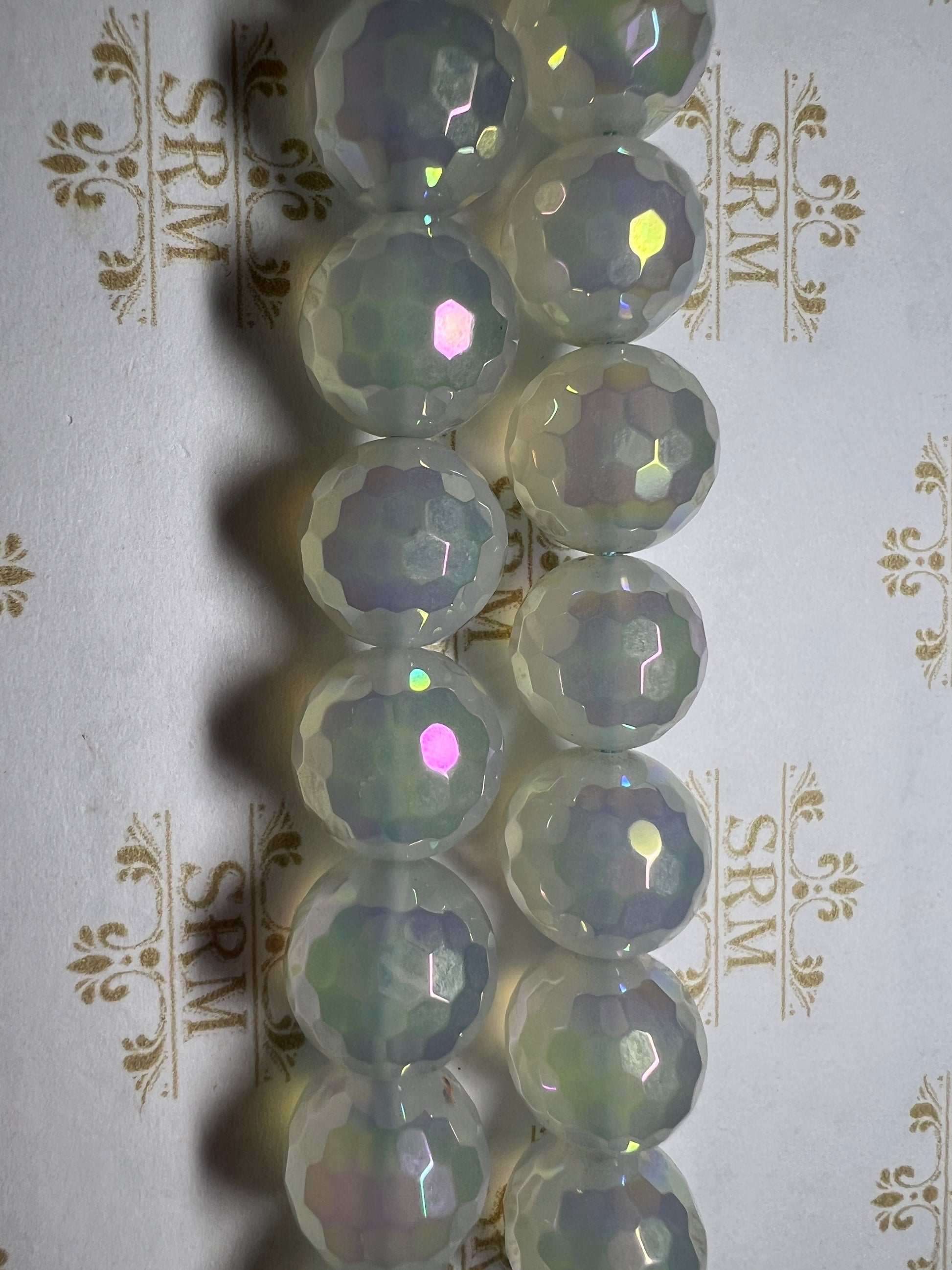 Beads : Clear Agate : Faceted : Electroplated : 12mm