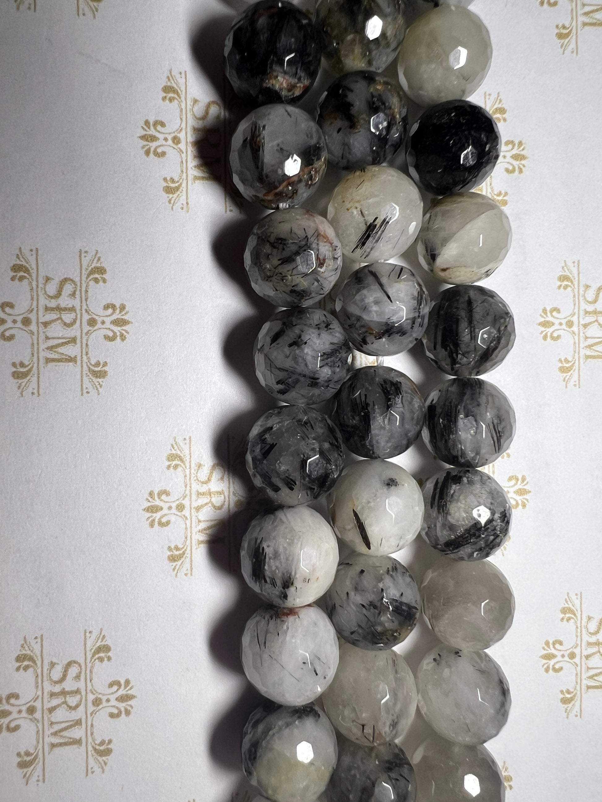 Beads : Black Tourmaline in Quartz : Faceted : 12mm