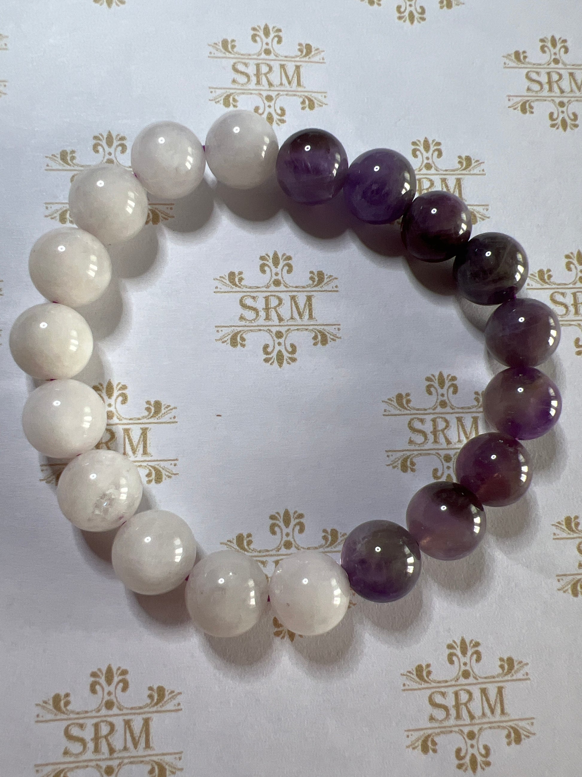 Bracelet : 10mm Chevron Amethyst + White Quartz Mix, 6¼”
