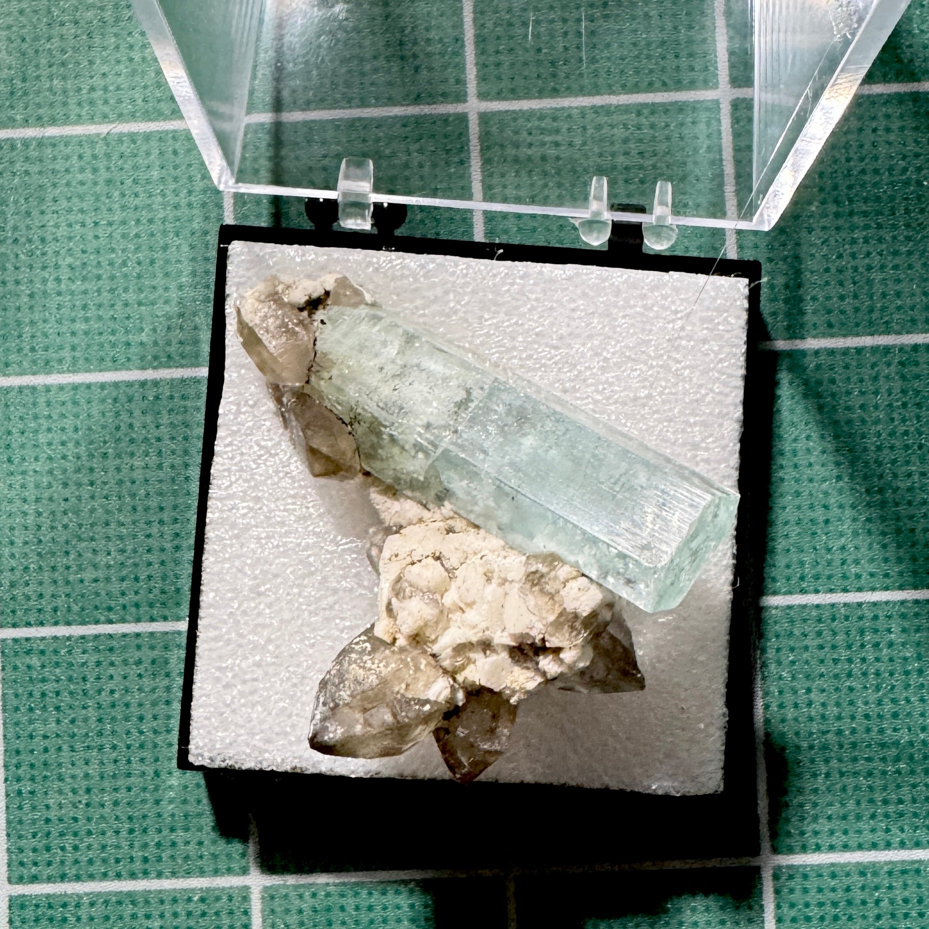 Crystal : Mounted : Natural Aquamarine on Smoky Quartz and Feldspar, Namibia, 26g