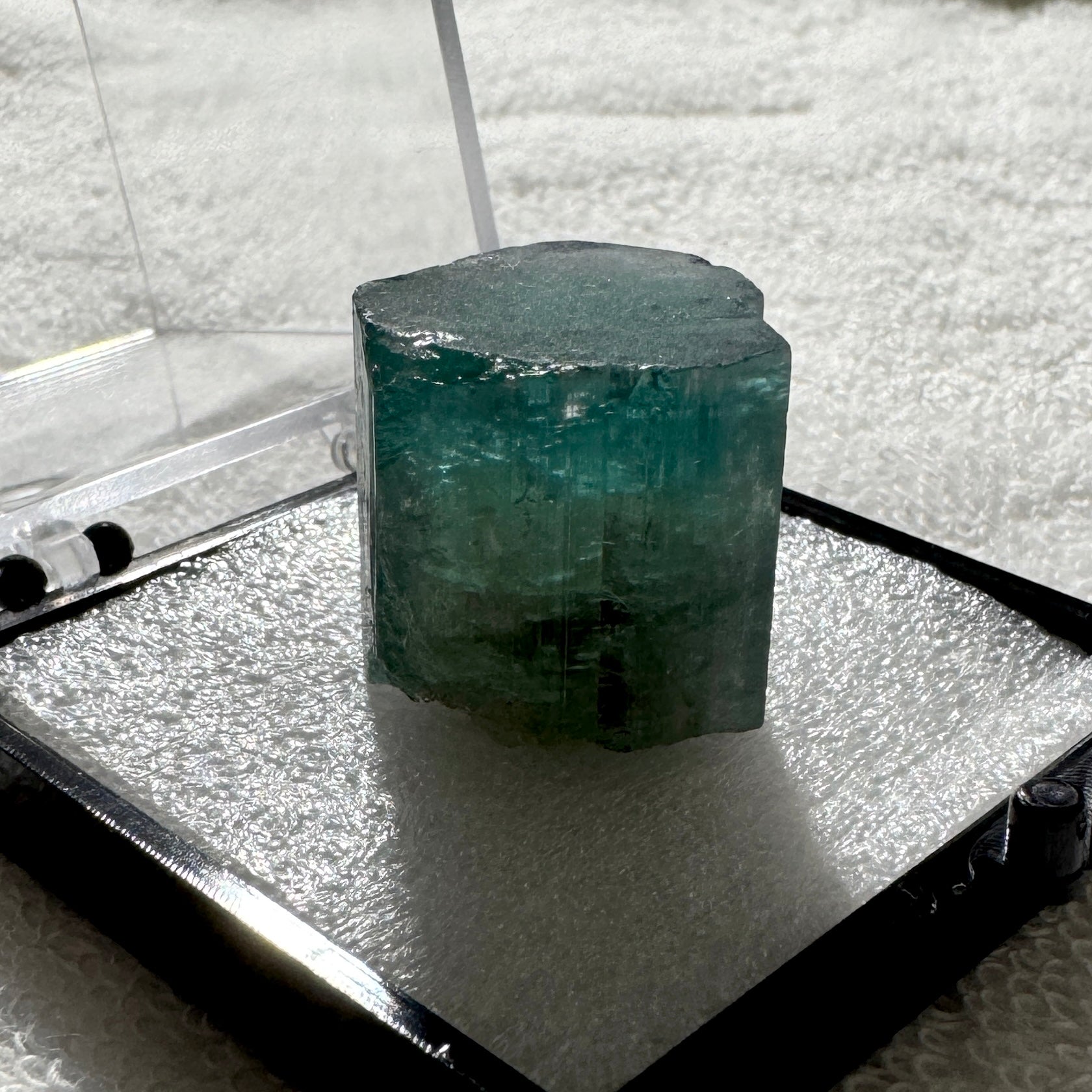 Watermelon Tourmaline crystal mounted in 2” acrylic box. Crystal measures 20mm x 23mm x 21mm and weighs 107.65 carats.