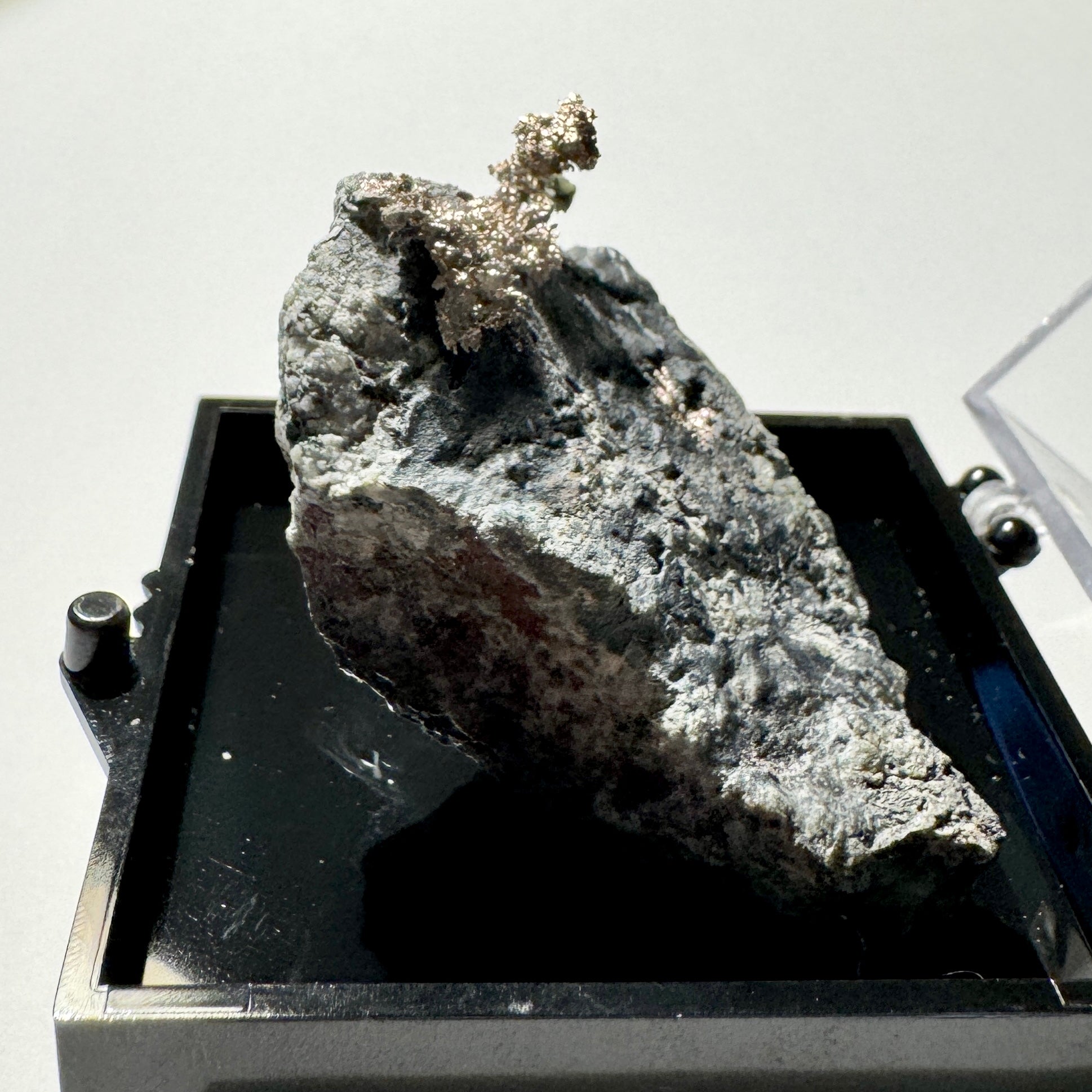 Beautiful Native Silver on grey host rock specimen mounted in a 2" acrylic box.