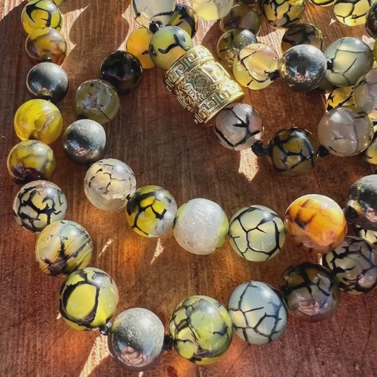 Necklace : Dragon Vein Agate (34") with Tibetan Bead Pendant (2")