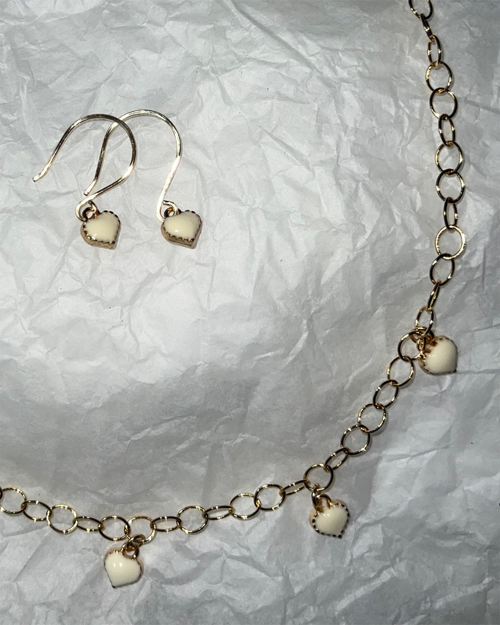 Necklace & Earrings : White Sweetheart Chain Necklace and Earrings