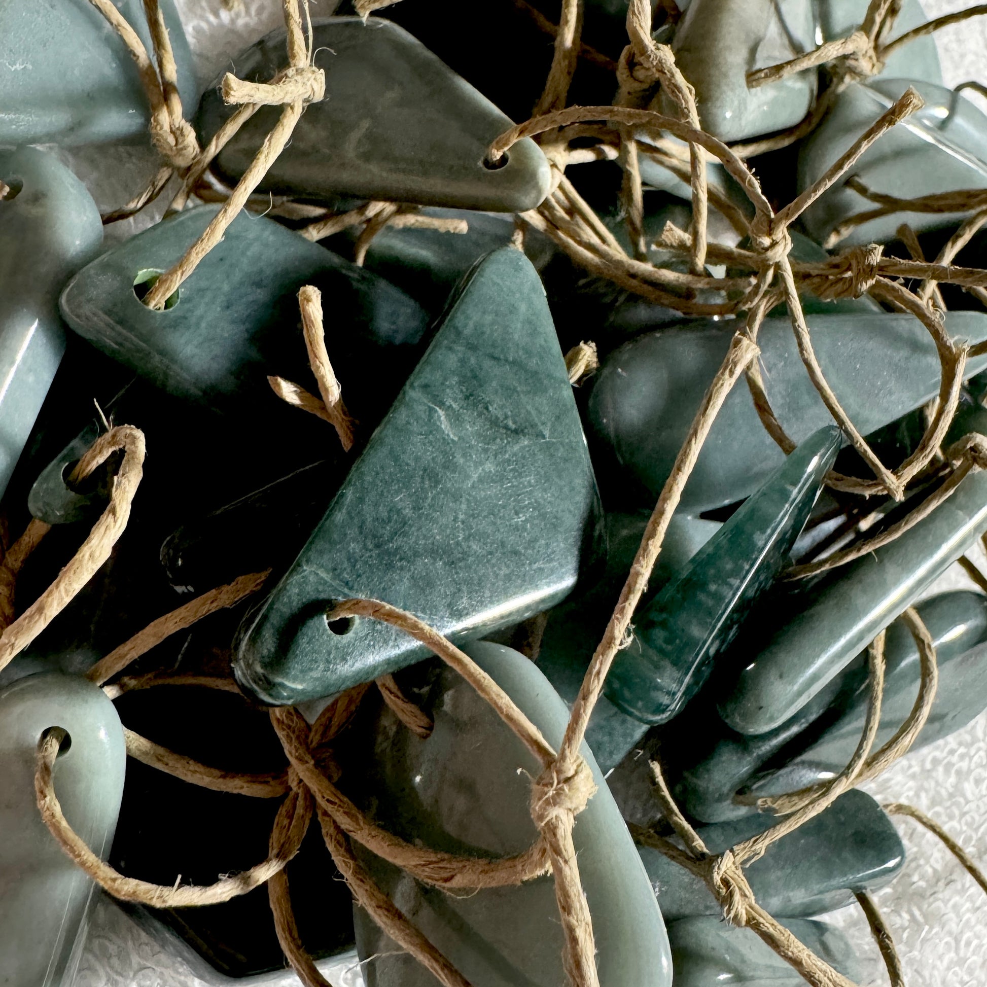 Freeform polished Jadeite pendants from Guatemala. Various shapes measuring about 1” to 2”.