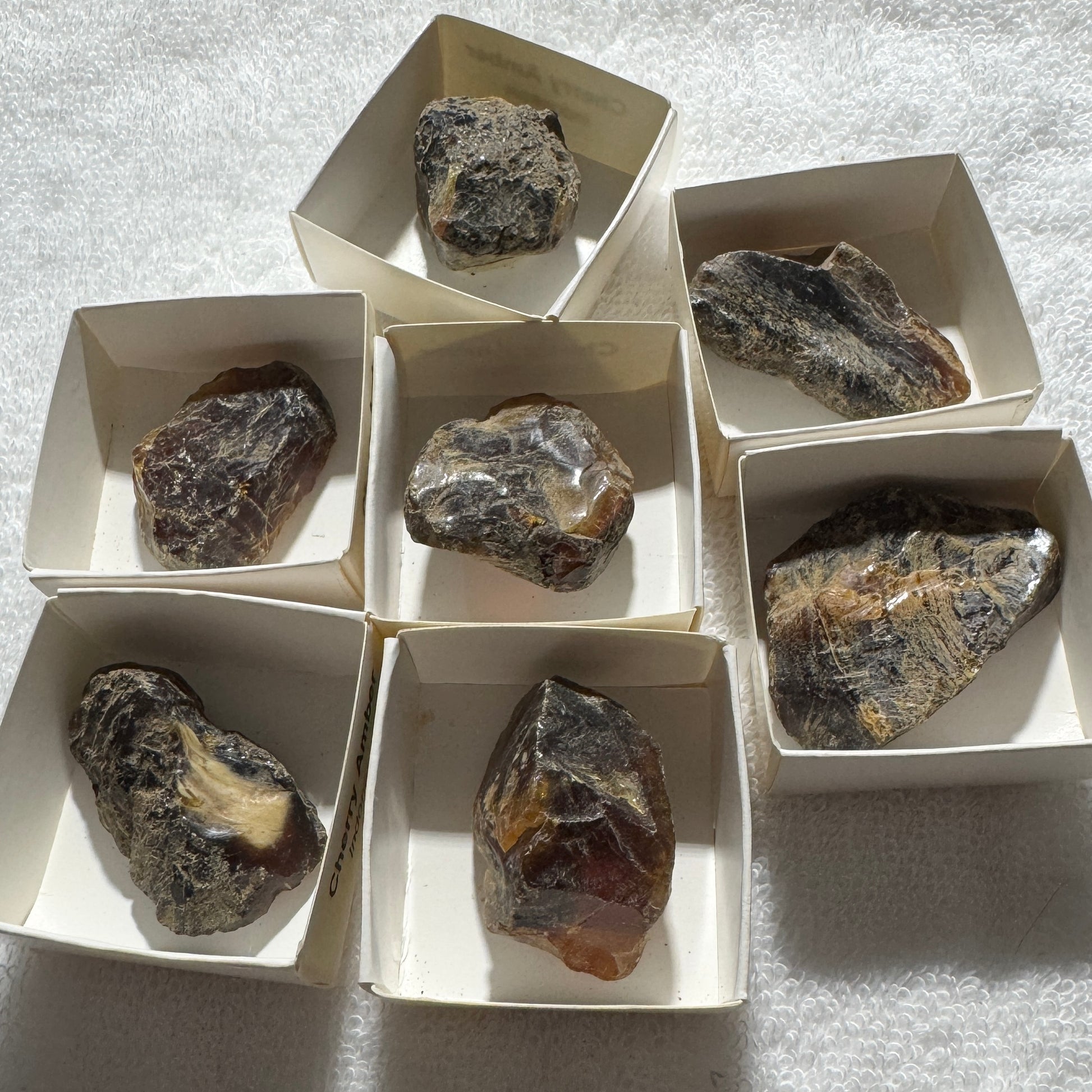 Each stone measures about 1-1/4" to 1-1/2". The cherry/brown color of the amber is from natural oxidation