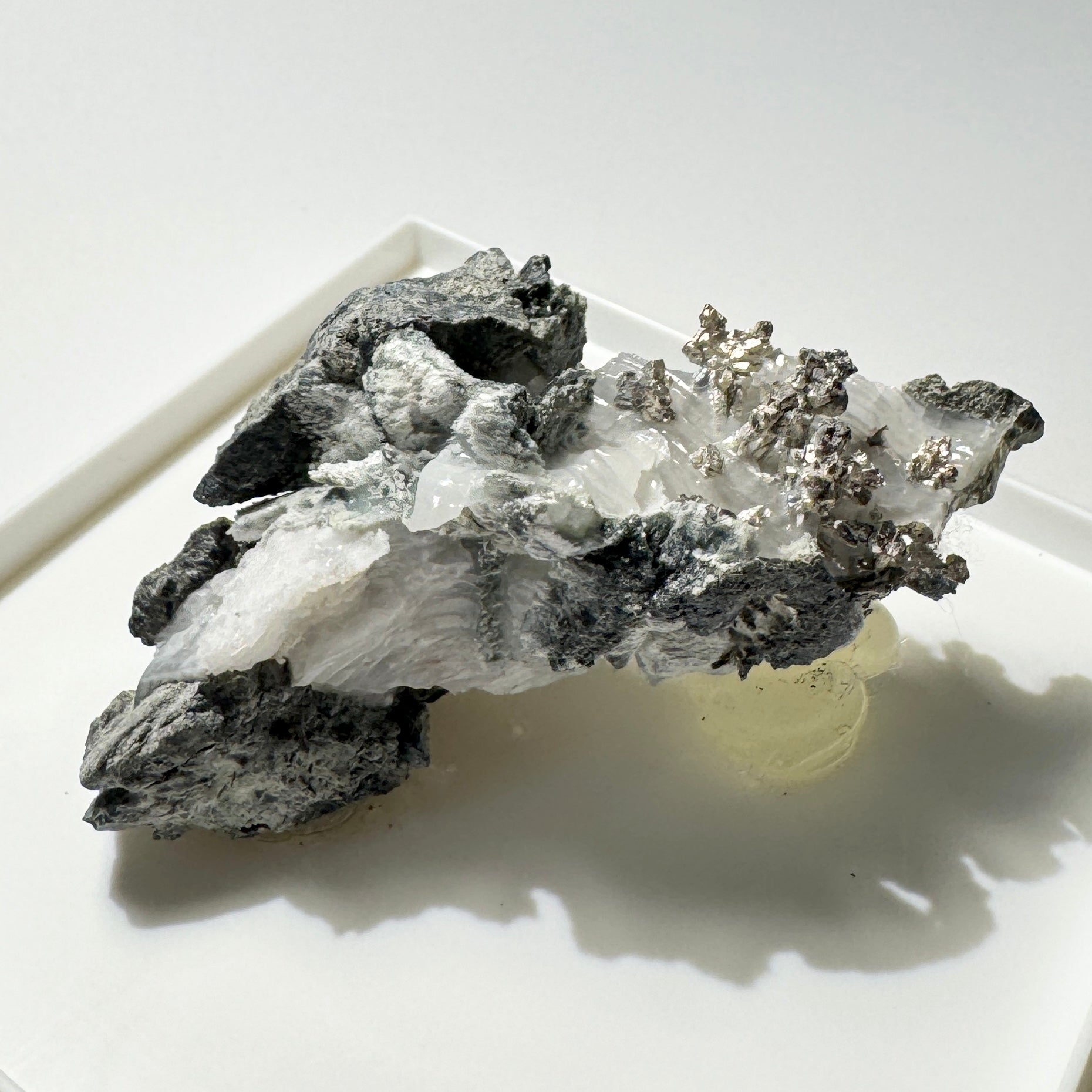 Crystal : Mounted : Native Silver on Calcite Display Specimen